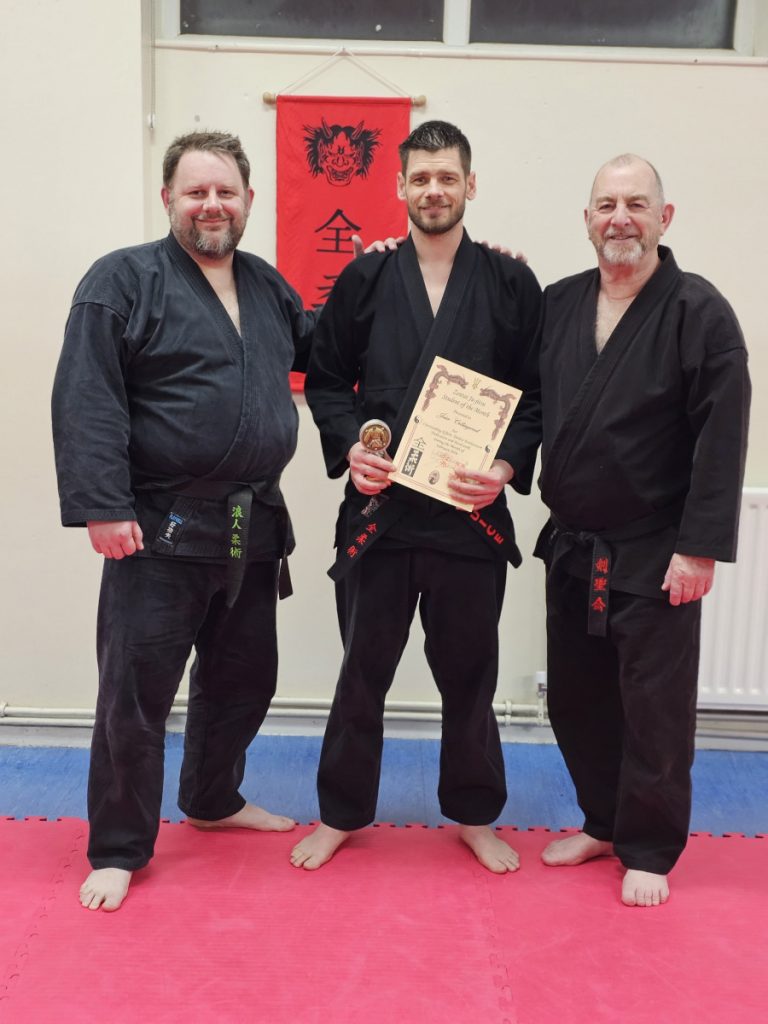 After decades of dedication, Sensei Colin Foster awarded Sensei James Coyne Rokudan for teaching his amazing & diverse skills with patience & generosity.